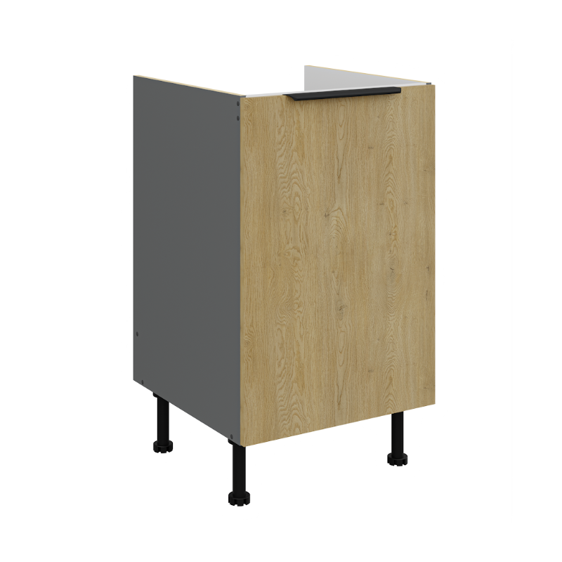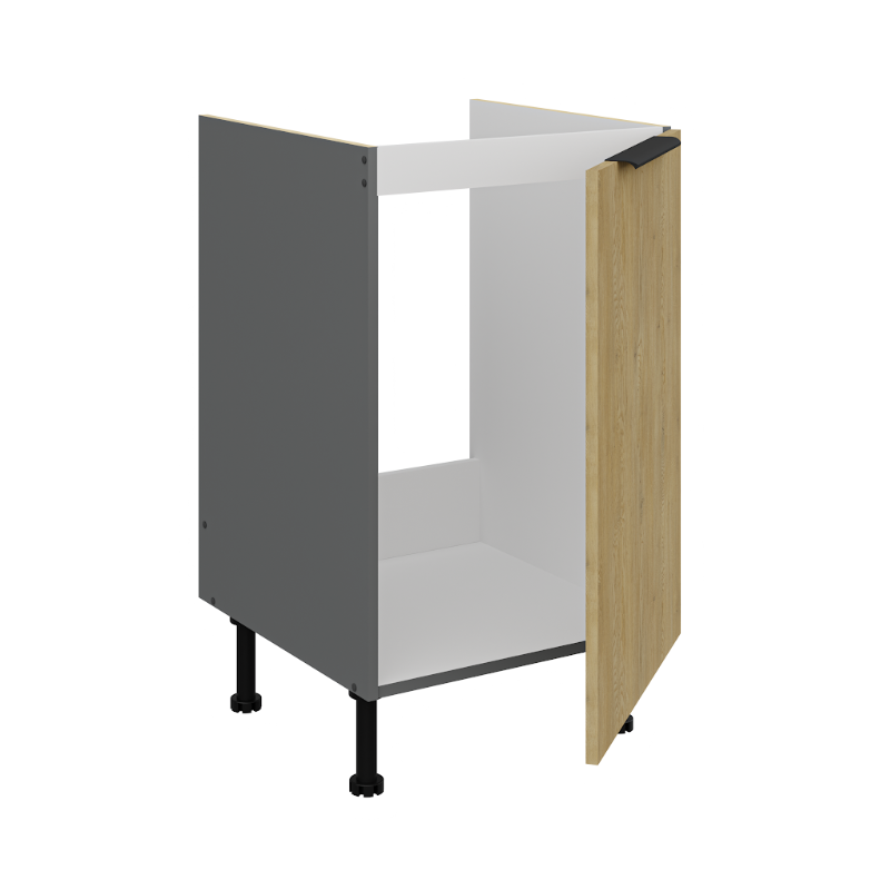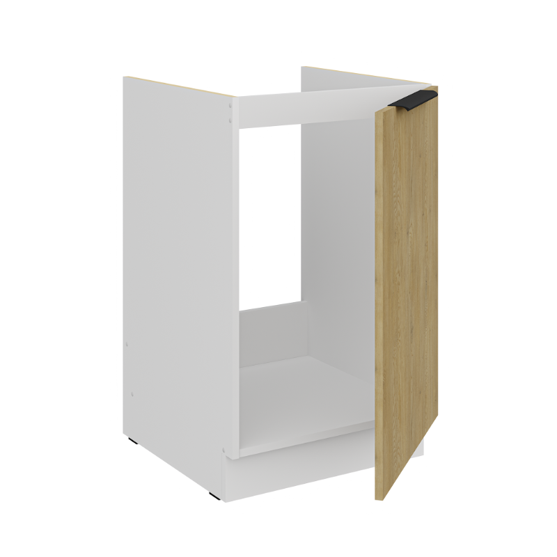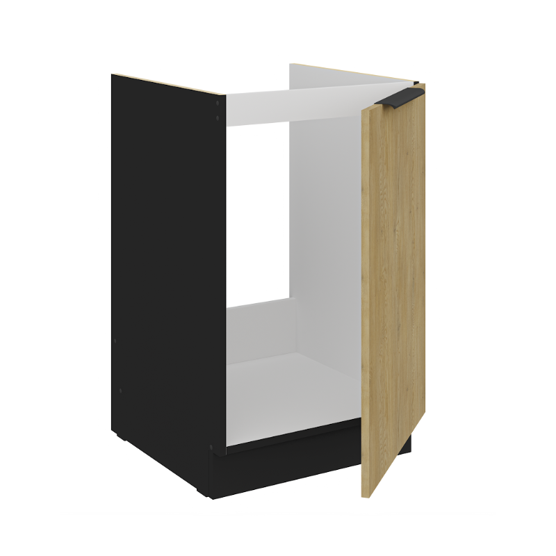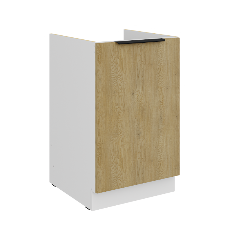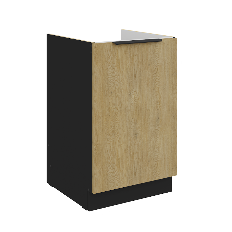 Dolná skrinka Cremona 50 D ZL 1F BB je 1-dverová skrinka určená na zabudovanie drezu. Je vybavená jednými plnými dvierkami s čiernym úchytovým profilom v hornej časti, ktoré otvárajú priestranný vnútorný priestor. Je navrhnutá bez vnútorných políc, čo poskytuje dostatok priestoru na inštaláciu drezu a vodoinštalácie. V zadnej časti sa nachádza výrez, ktorý umožňuje jednoduché vedenie vody a inštaláciu sifónu.