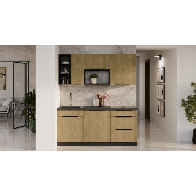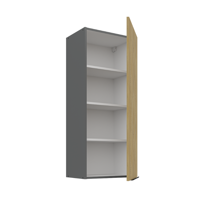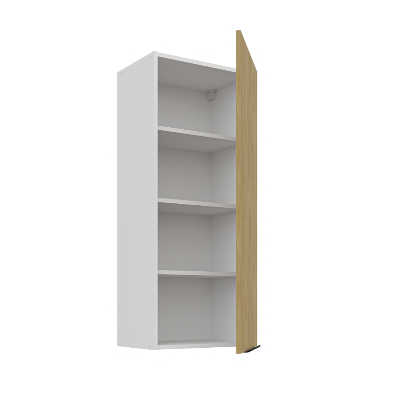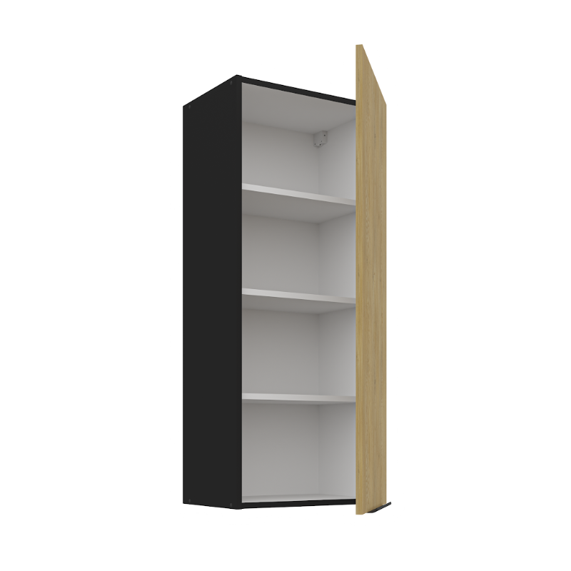 Horná skrinka Cremona WH 45 G-108 1F je 1-dverová vysoká skrinka v modernom štýle. Dvierka sa otvárajú pomocou čierneho úchytového profilu umiestneného v spodnej časti. Vnútorný priestor je prakticky členený tromi pevnými policami, ktoré ponúkajú dostatok miesta na uloženie kuchynského riadu, potravín alebo doplnkov.