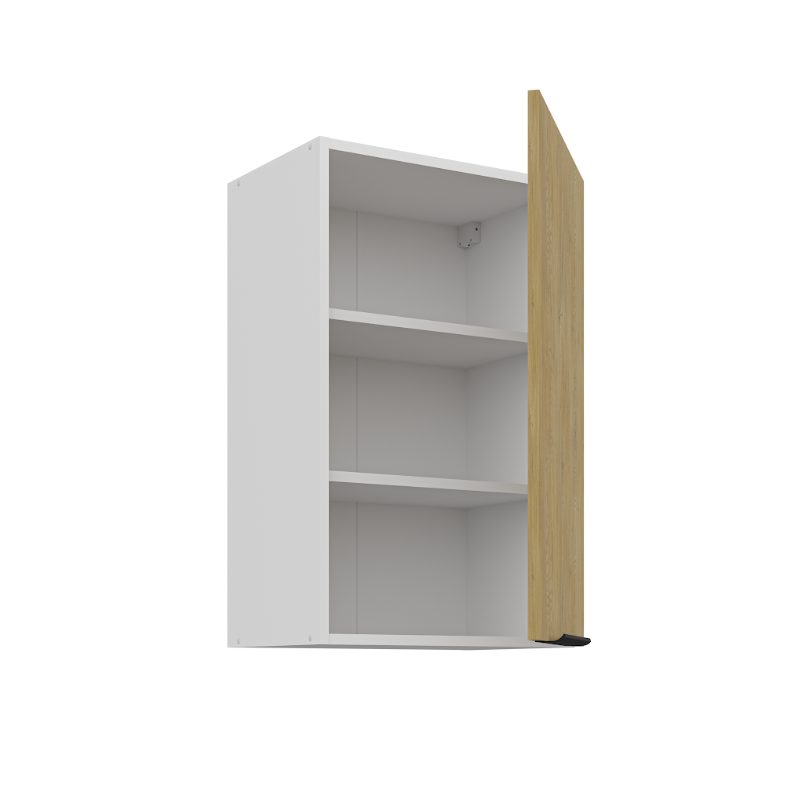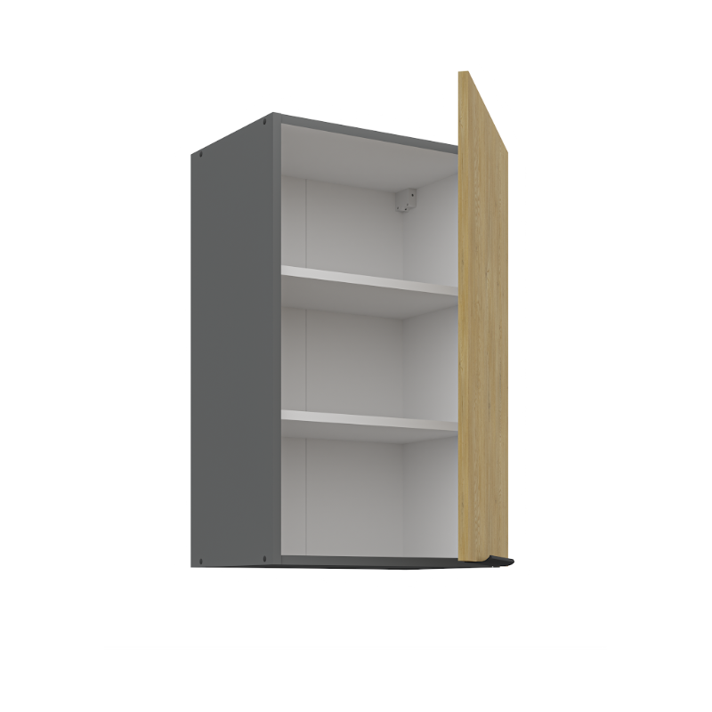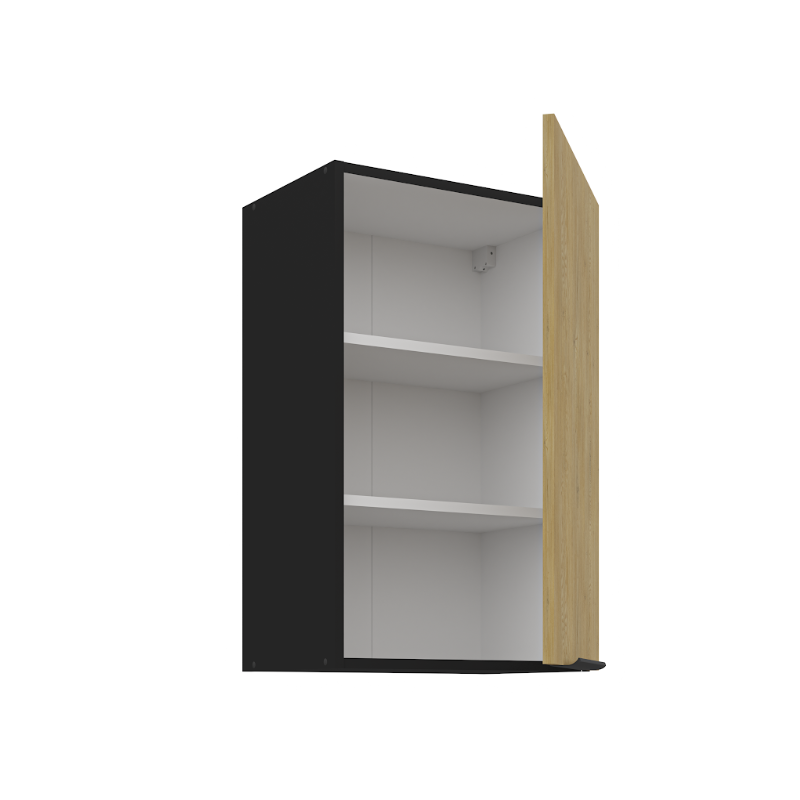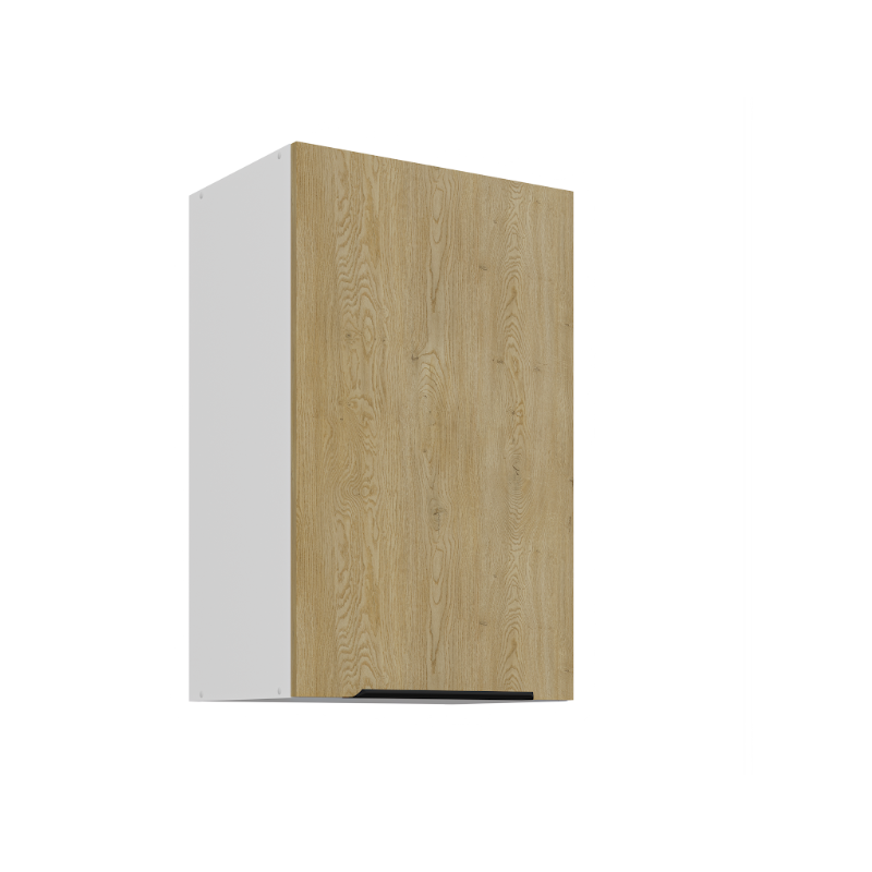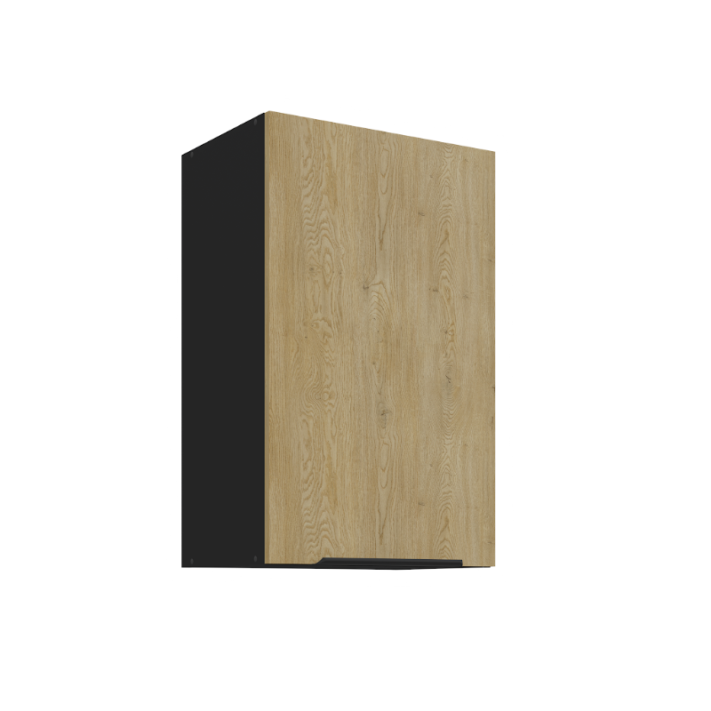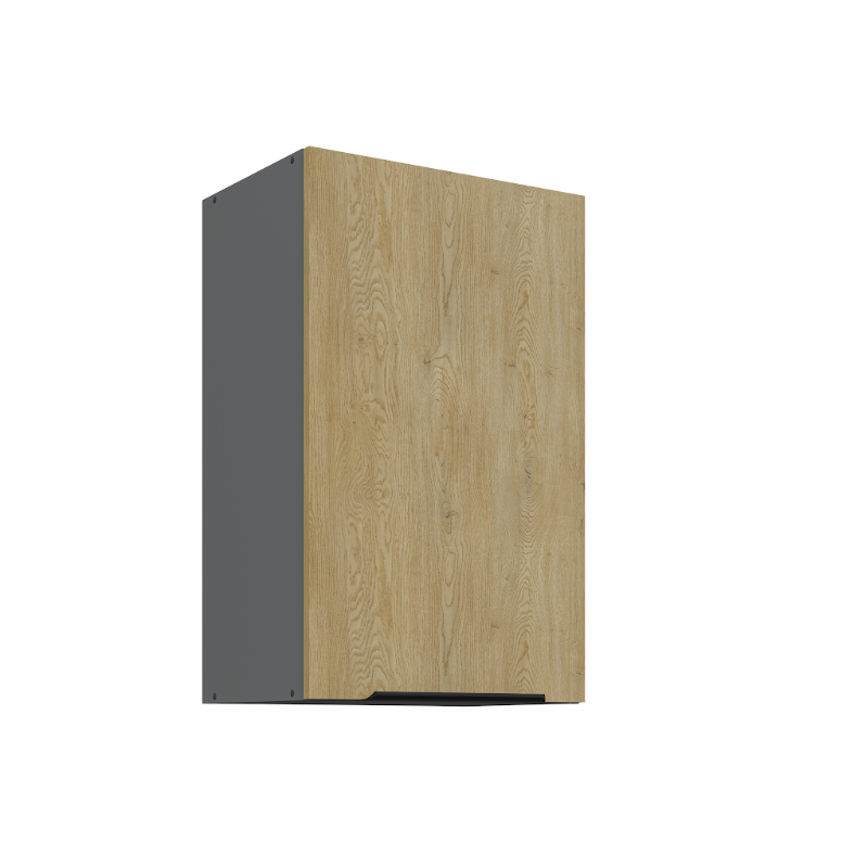 Horná skrinka Cremona 45 G-72 1F je 1-dverová závesná skrinka, ktorá vyniká moderným vzhľadom a praktickým riešením úložného priestoru. Vo vnútri sa nachádzajú dve police, ktoré poskytujú praktický úložný priestor na každodenné kuchynské potreby. Dvierka dopĺňa decentný čierny úchytový profil umiestnený v spodnej časti.