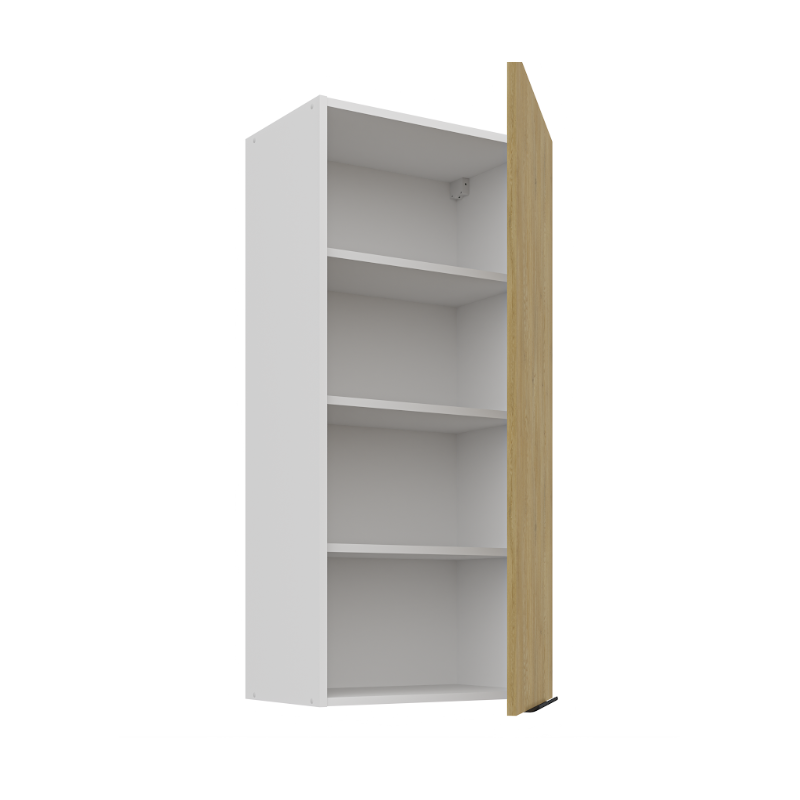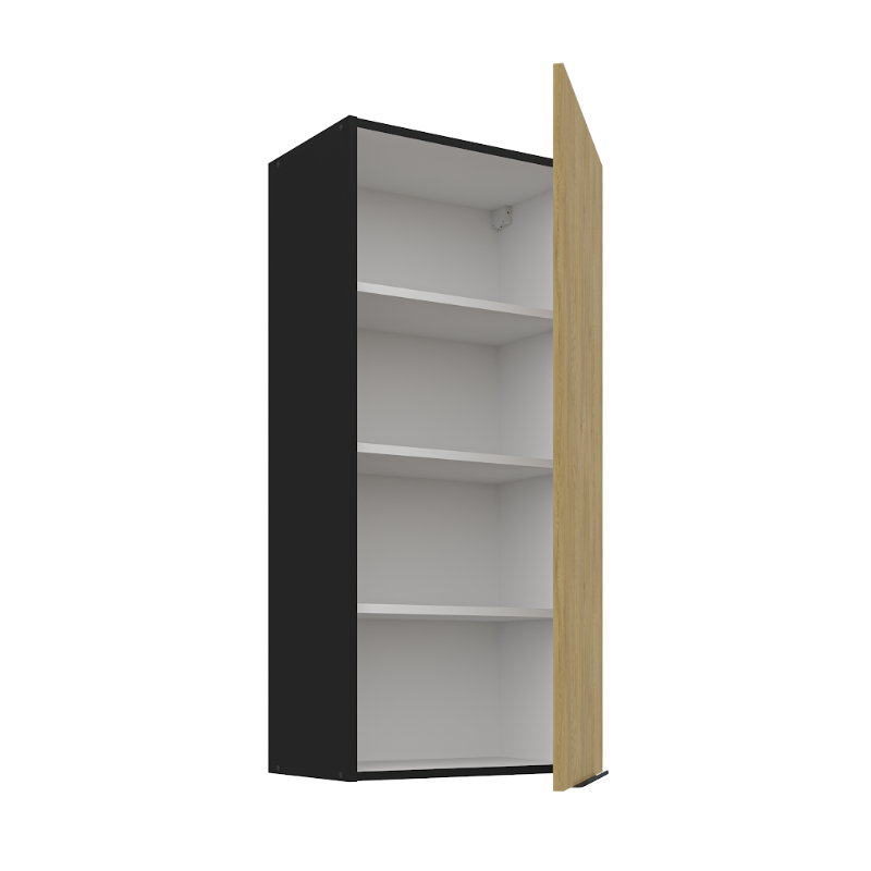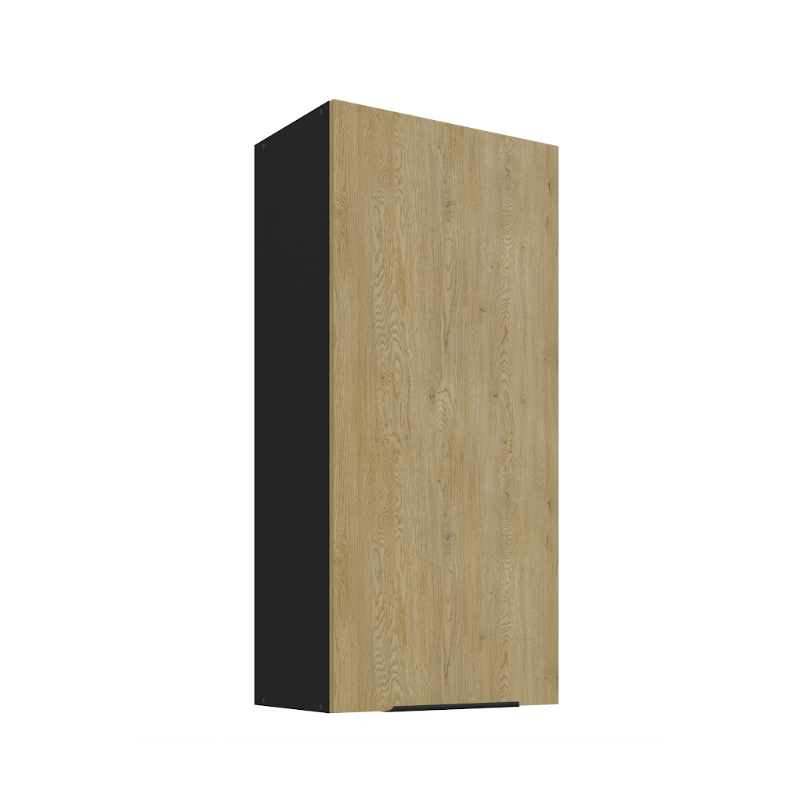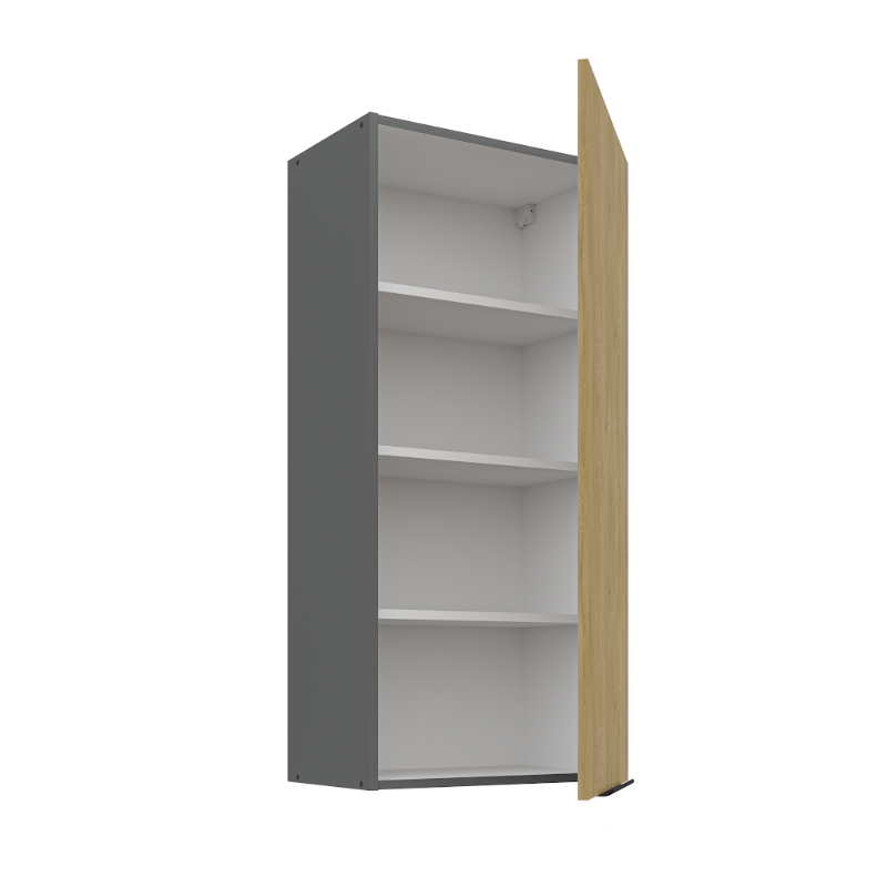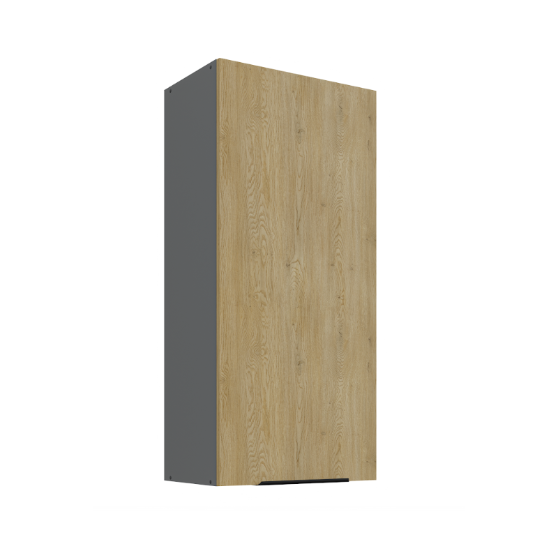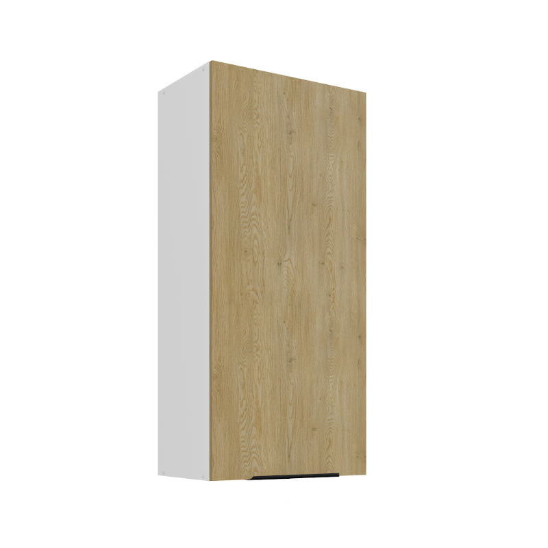 Horná skrinka Cremona 50 G-108 1F je vysoká 1-dverová skrinka v modernom dizajne. Dvierka sú vybavené decentným čiernym úchytovým profilom v spodnej časti, ktorý umožňuje pohodlné otváranie. Vo vnútri skrinky sa nachádzajú tri praktické police, ktoré poskytujú dostatok úložného priestoru na kuchynské potreby.