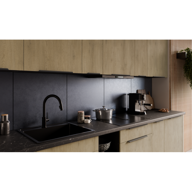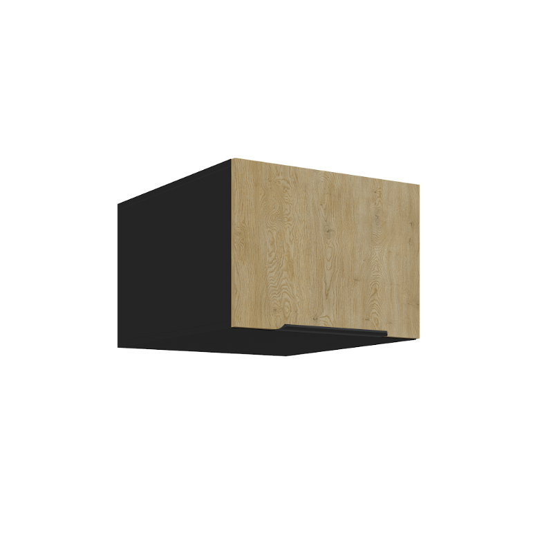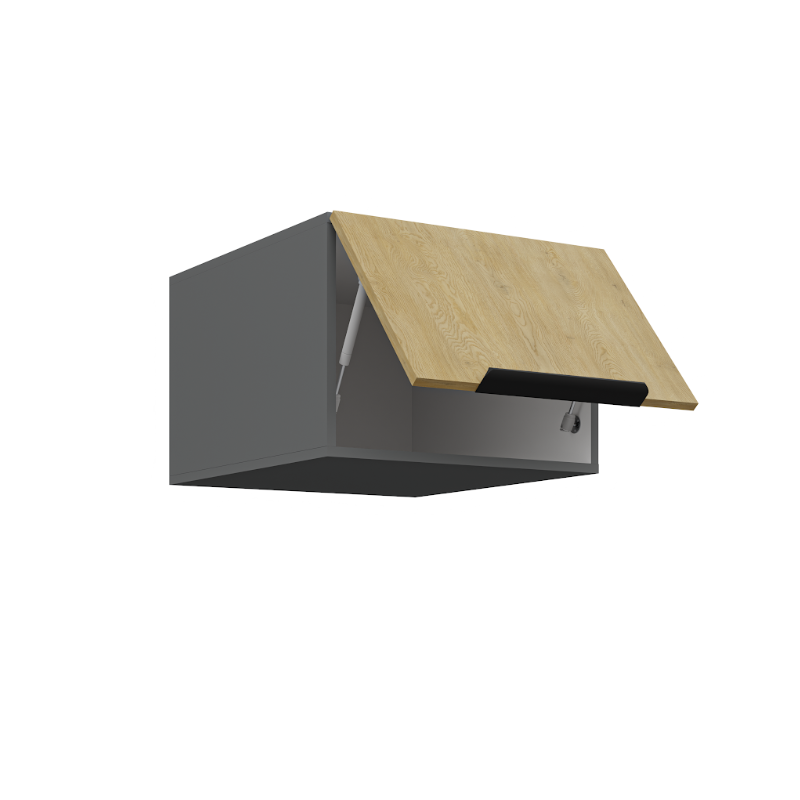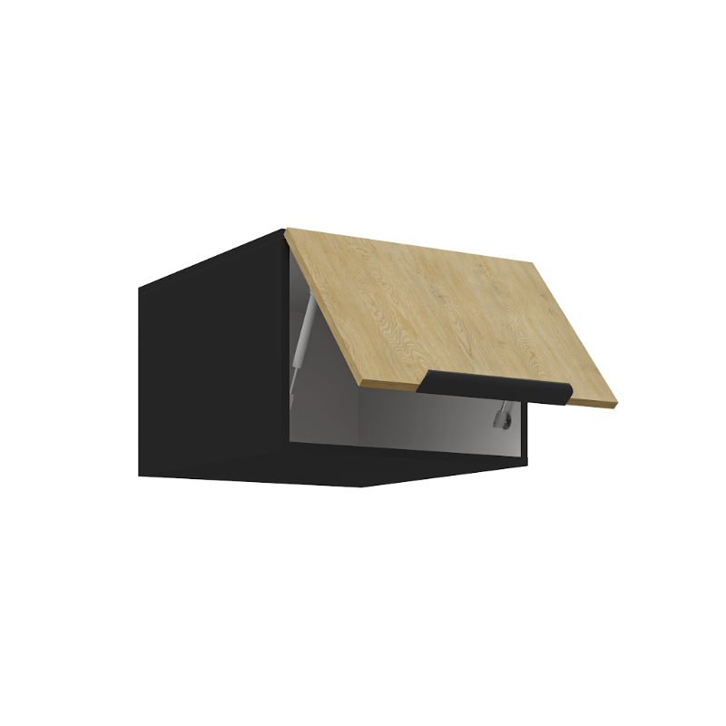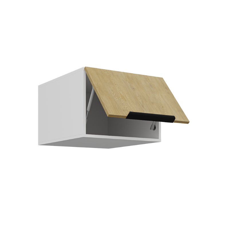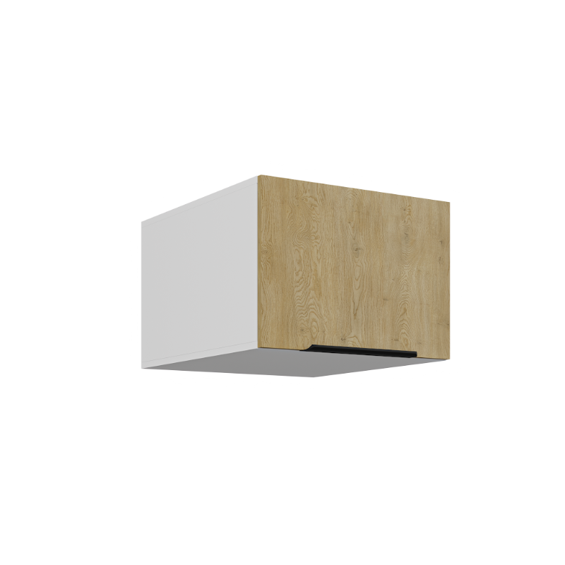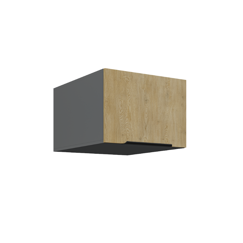 Horná skrinka Cremona WH 50 GU-36 1F je výklopná skrinka s moderným dizajnom. Je určená predovšetkým na umiestnenie nad horné skrinky. Otváranie zabezpečuje výklopný mechanizmus s kovovými vzperami, ktoré držia dvierka otvorené vo vyklopenej polohe. Dvierka dopĺňa decentný čierny úchytový profil umiestnený v spodnej časti. Vnútorný priestor skrinky je jednodielny bez políc, čo umožňuje uloženie aj vyšších kuchynských potrieb.