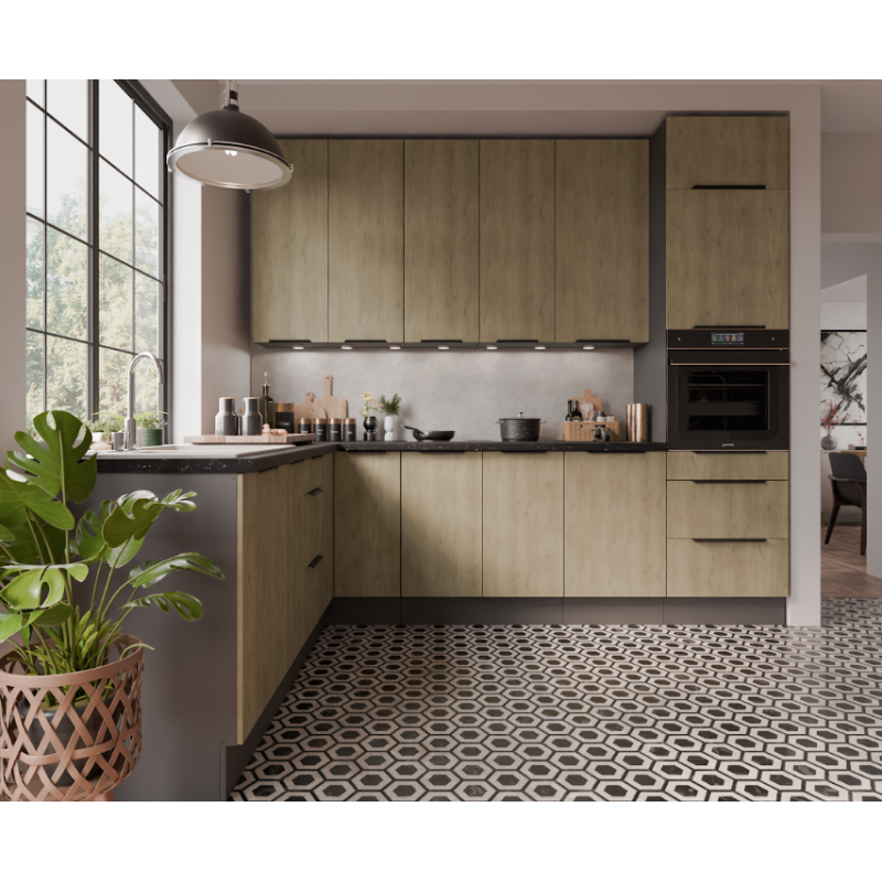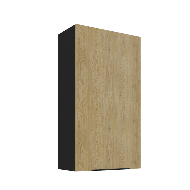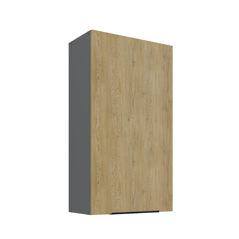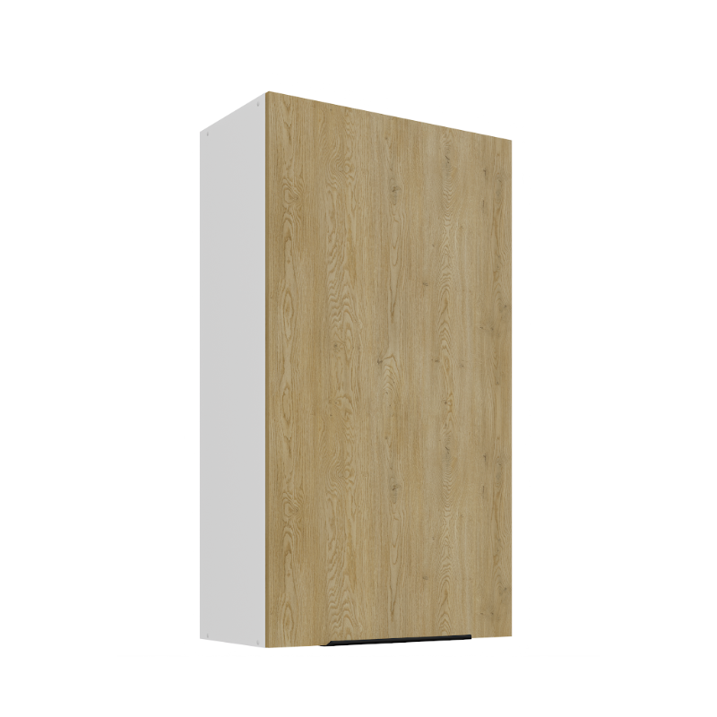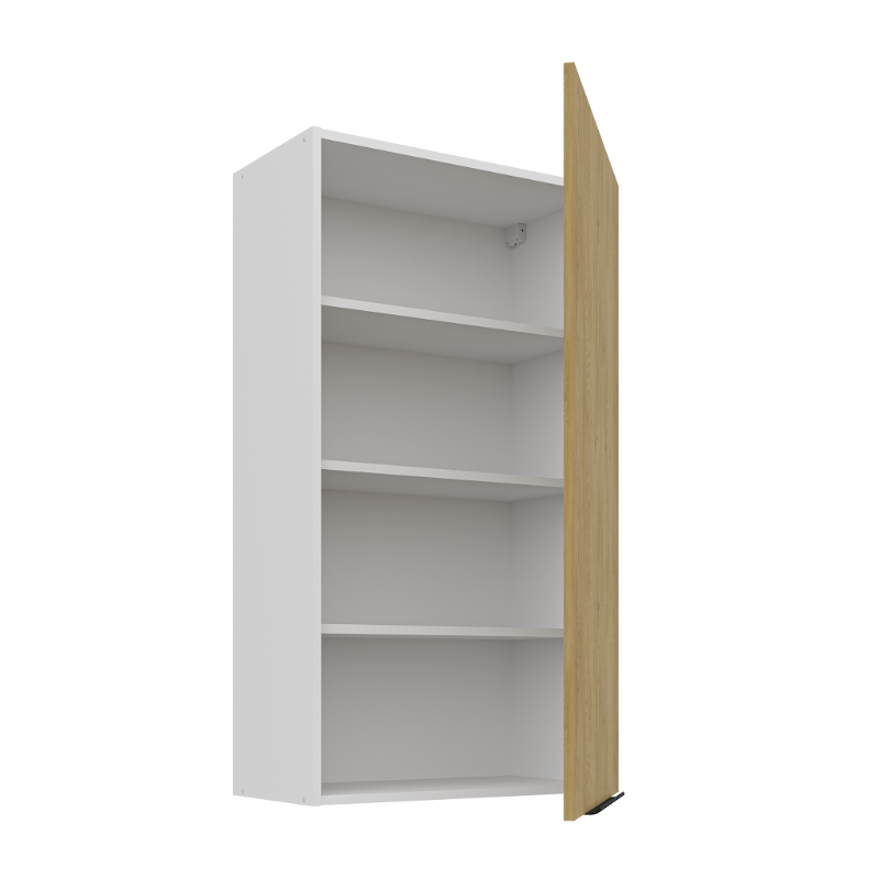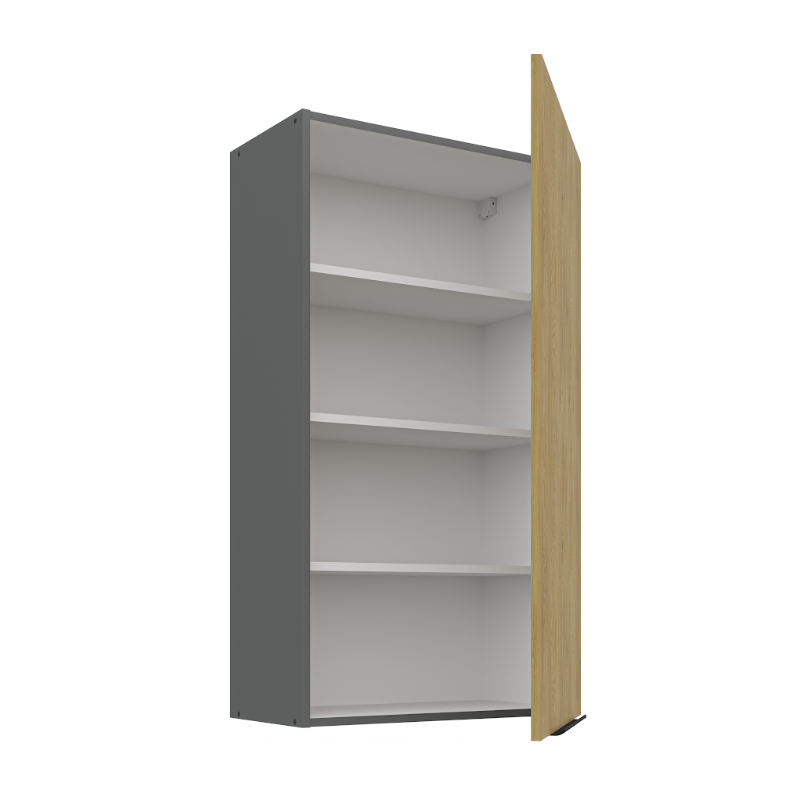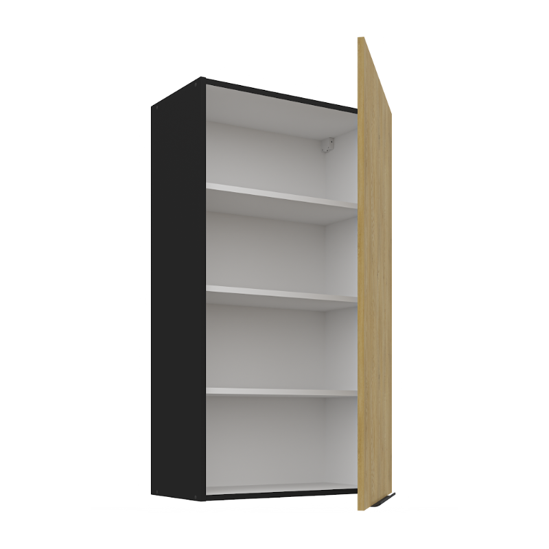 Horná skrinka Cremona WH 60 G-108 1F je 1-dverová skrinka s výškou 108 cm, navrhnutá v modernom a elegantnom dizajne. Dvierka sú vybavené decentným čiernym úchytovým profilom umiestneným na spodnej hrane. Vo vnútri sa nachádzajú tri pevné police, ktoré rozdeľujú úložný priestor na štyri praktické úrovne.