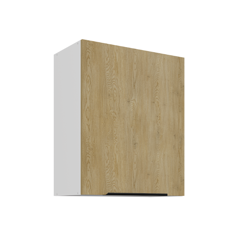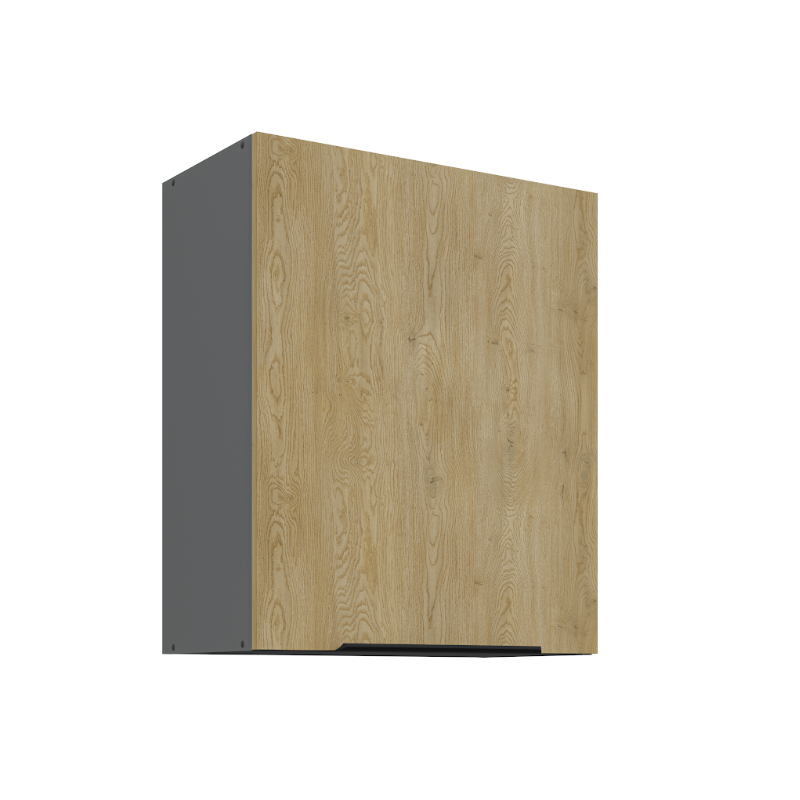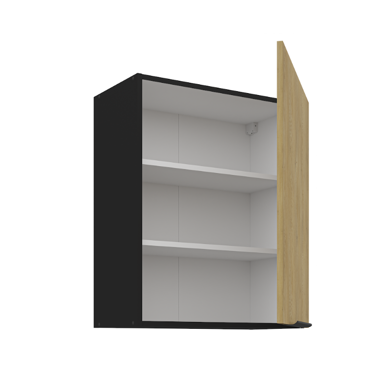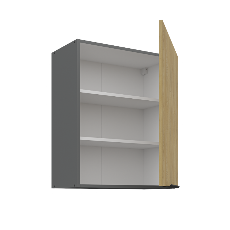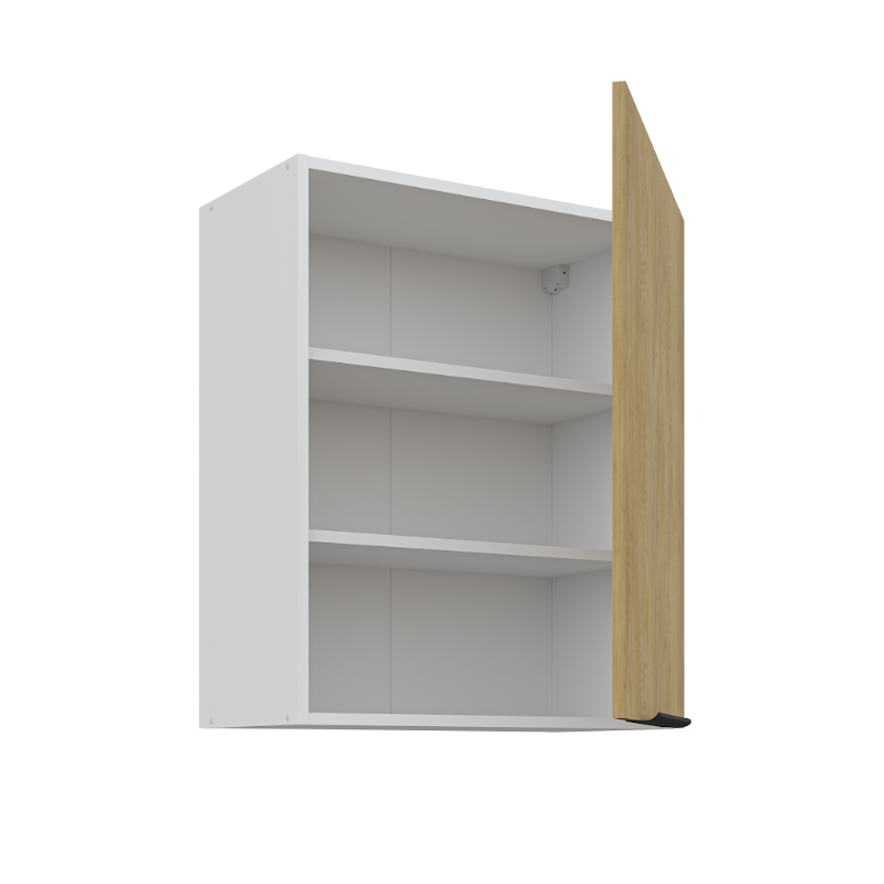 Horná skrinka Cremona WH 60 G-72 1F je 1-dverová skrinka v modernom dizajne. Dvierka dopĺňa decentný čierny úchytový profil umiestnený v ich spodnej časti. Vo vnútri sa nachádzajú dve police, ktoré rozdeľujú priestor na tri praktické úložné zóny.