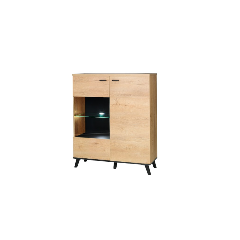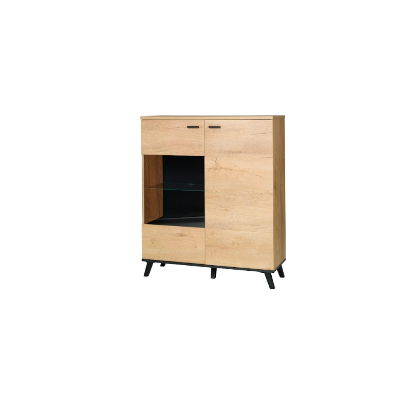 Komoda je zaradená do zostavy John. Je kombinovateľná s ďalšími segmentami zo zostavy John. Je vyrobená z pevného, kvalitného a zároveň ľahkého materiálu. Úložný priestor v komode je chránený dvierkami, za ktorými sú police. Na dvierkach sa nachádzajú podlhovasté úchytky. Možnosť dokúpiť 1-bodové LED osvetlenie.