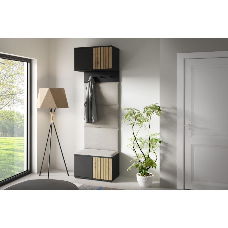Predsieňová zostava ROSS s čalúnenými panelmi je v ponuke v mnohých farebných variantoch. Ponúkame tiež možnosť dokúpiť nástenné panely aj samostatne. Všetky skrinky sa otvárajú pomocou systému "push to open". Stranu otvárania dvierok si určite sami počas montáže.