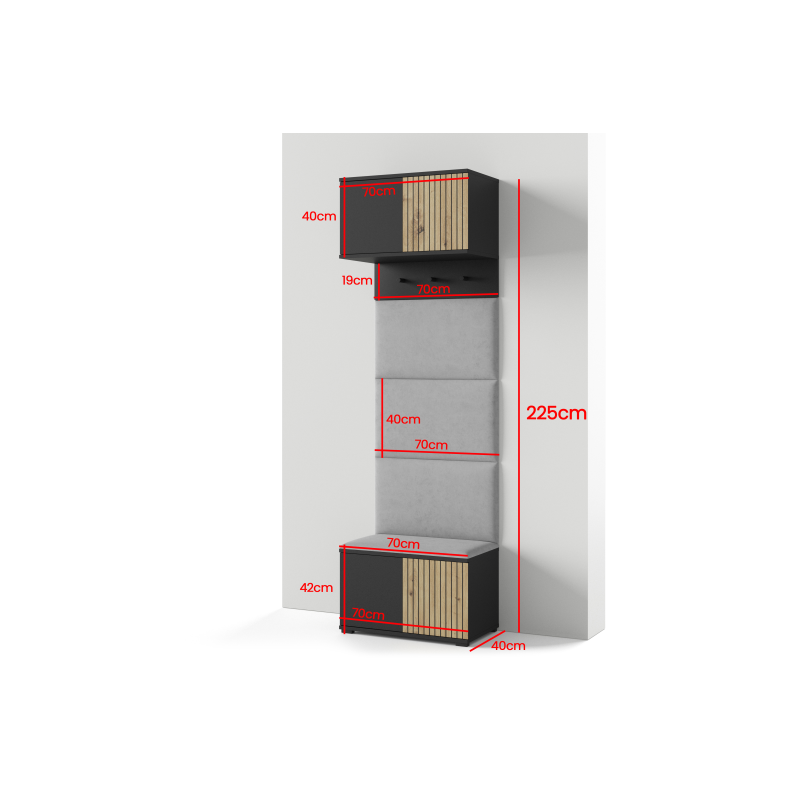 Rozmery ŠxVxH: 70x225x40 cm (podrobnejšie zobrazené aj v galérii)