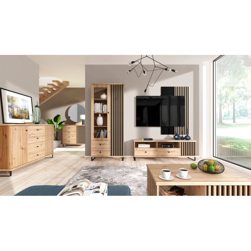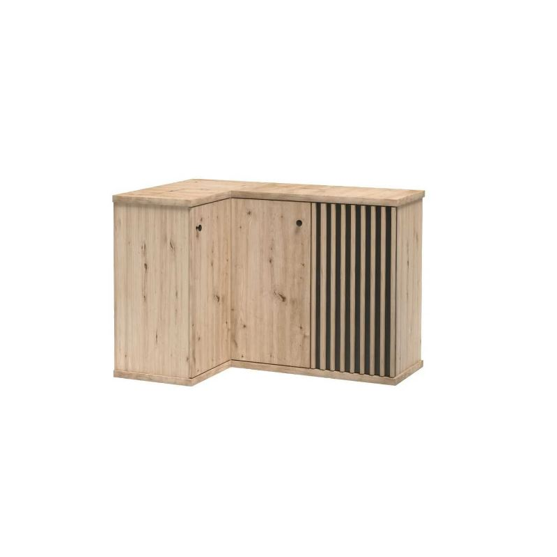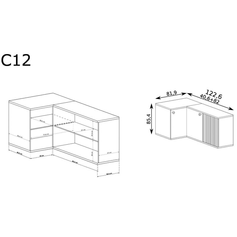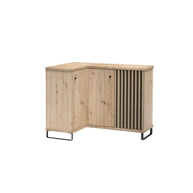 Rohová komoda CALI C-12 s moderným dizajnom, vhodná do každého interéru má ozdobné lišty v podobe lamiel, ktoré dodávajú nábytku zaujímavý charakter. Drobná úchytka je detailom hodný pozornosti, ktorý dokonale ladí s farbou šatníka. Komoda CALI C-12 je priestranná rohová, trojdverová . Rohové komody sú perfektným riešením, nemusíte si lámať hlavu nad tým, či do rohu postavíte rastlinu, lampu alebo kreslo.