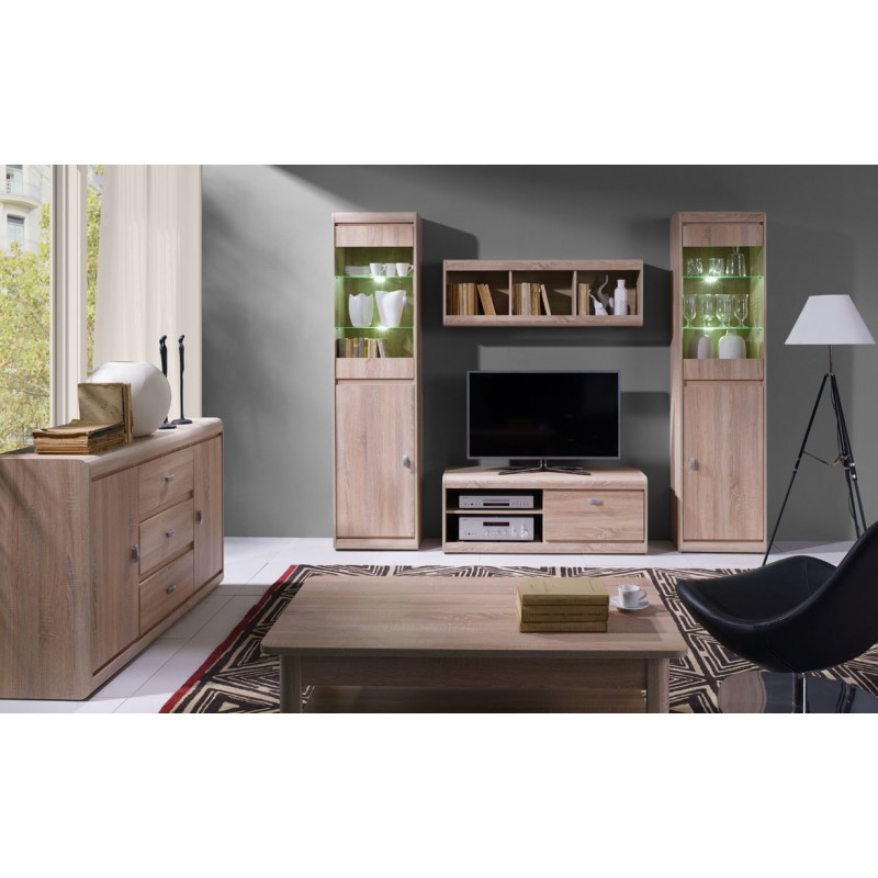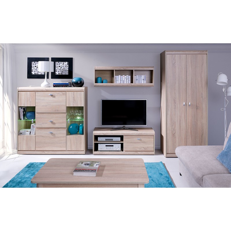 RTV stolík moderného dizajnu je vhodná hlavne do obývačky. Nábytok do obývačky je vyrobený z pevného, kvalitného a zároveň aj ľahkého materiálu. Nábytok patrí do zostavy SILVER a je možné ho skombinovať aj s ďalšími segmentami a vytvoriť tak jednotný komplet do obývačky. Praktická polica sa dodáva vo farebnom prevedení dub sonoma.