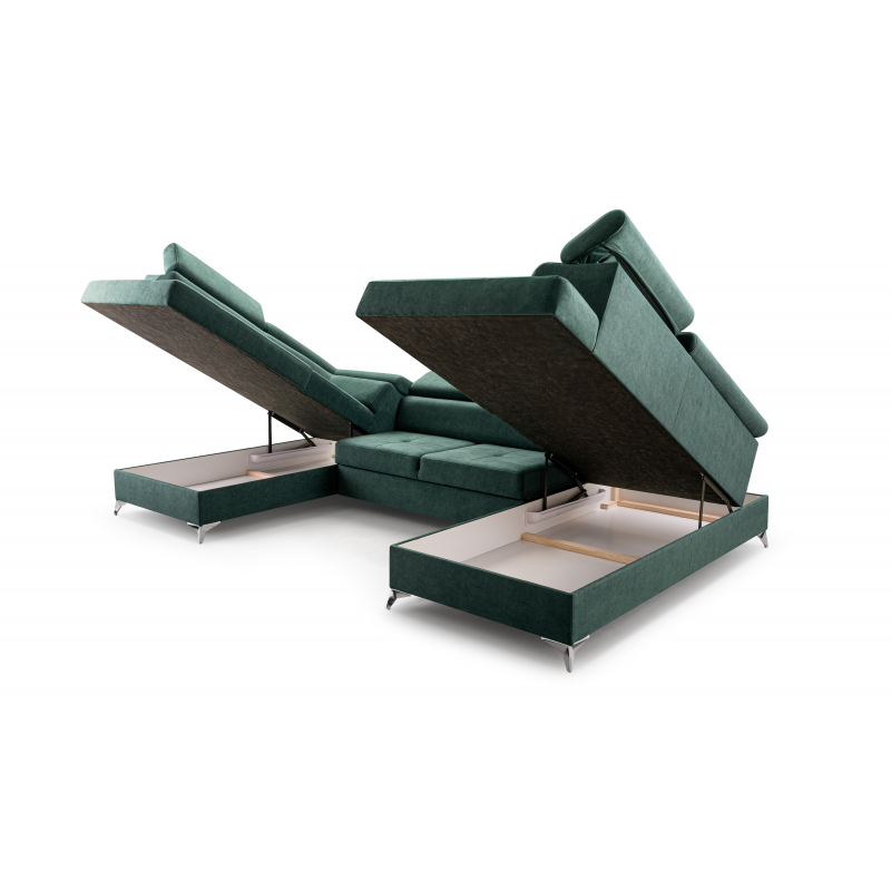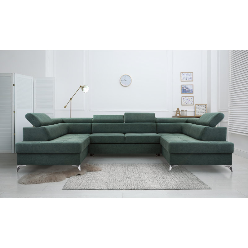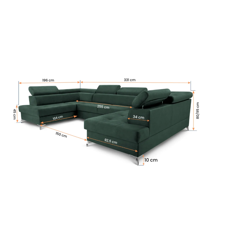Sedačku si môžete vhodne skombinovať s moderným i tradičným nábytkom. Nádych modernosti dodávajú strieborné kovové nohy. Vďaka komfortnej výplni sedadla z vysokoelastickej peny HR a peny T30 a operadla sa stane táto sedačka najpohodlnejším miestom v izbe. Sedačka disponuje úložným priestorom v oboch otomanoch. Dá sa jednoducho rozložiť na lôžko 260x127 cm. Celkové rozmery sedačky ŠxVxH 330/80-95/196 cm. Hĺbka sedu 58 cm. Záhlavníky na sedačke sú polohovacie. Zadná časť sedačky je potiahnutá materiálom farebne ladiacim k celku. Látka Vena je zamatová, na dotyk je veľmi príjemným poťahovým materiálom. Má hrubú podšívku, ktorá jej dodáva objem a zaisťuje veľmi vysokú odolnosť. Látka bola vyrobená technológiou Easy Clean, takže udržať ju v čistote nebude najmenší problém.