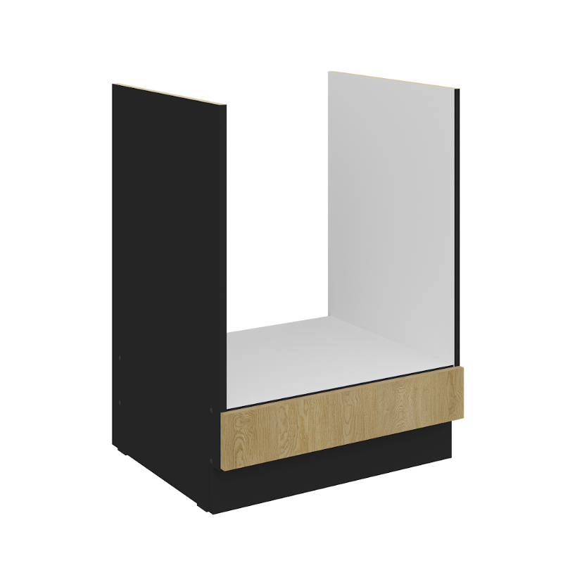 Dolná skrinka Cremona 60 D GAZ BB je určená na vstavanú. Otvorená konštrukcia bez zadnej steny a vnútorných políc umožňuje jednoduché osadenie spotrebiča a zabezpečuje jeho správne odvetranie. V spodnej časti sa nachádza nízke čielko v dekore dreva, ktoré dotvára jednotný vzhľad kuchynskej zostavy.