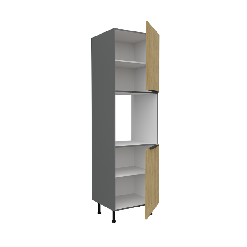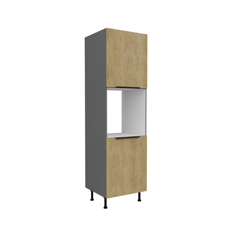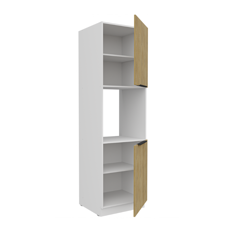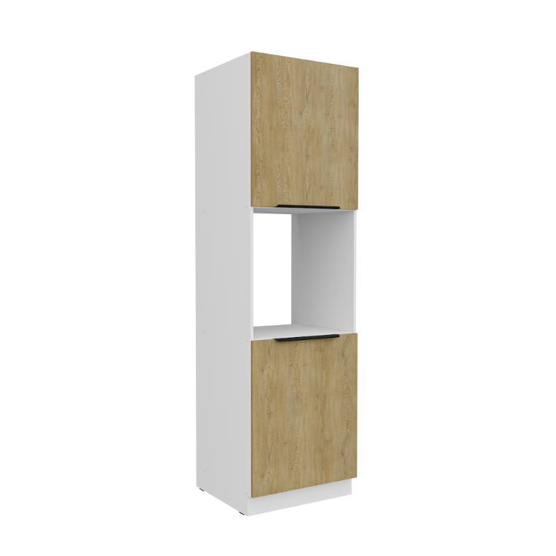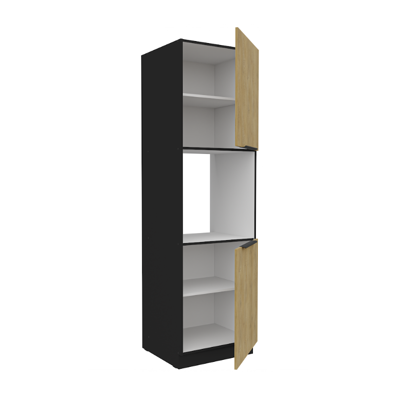 Vysoká skrinka Cremona 60 DP-210 2F je vysoká skrinka navrhnutá na vstavanú rúru. Disponuje dvomi dvierkami – horným a dolným – osadenými čiernymi úchytovými profilmi. Vnútorný priestor je rozdelený na tri časti: horný úložný priestor s policou, stredná otvorená časť určená pre zabudovanie rúry a spodný priestor s policou.