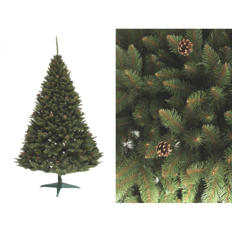 Umelý vianočný stromček Premium – Smrek horský so šiškami je výbornou voľbou, ktorá spája eleganciu a prirodzenosť. Husté, realisticky reprodukované konáre, s jemnými hnedými akcentmi, v kombinácii s prirodzene vyzerajúcimi šiškami prinesú do vášho domova skutočne sviatočnú atmosféru.