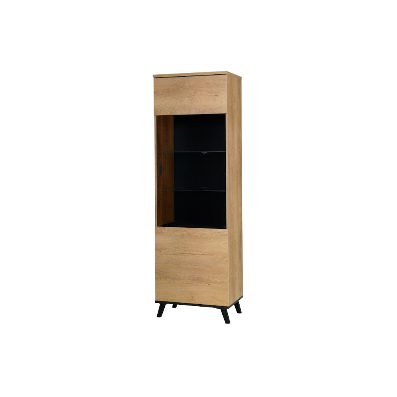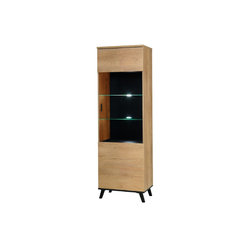Vitrína je zaradená do zostavy John. Vitrína je kombinovateľná s ďalšími segmentami zo zostavy John. Vitrína je vyrobená z pevného, kvalitného a zároveň ľahkého materiálu. Úložný priestor tvorený policami je chránený dvierkami, ktoré sú v hornej časti presklené. Možnosť dokúpiť LED osvetlenie.